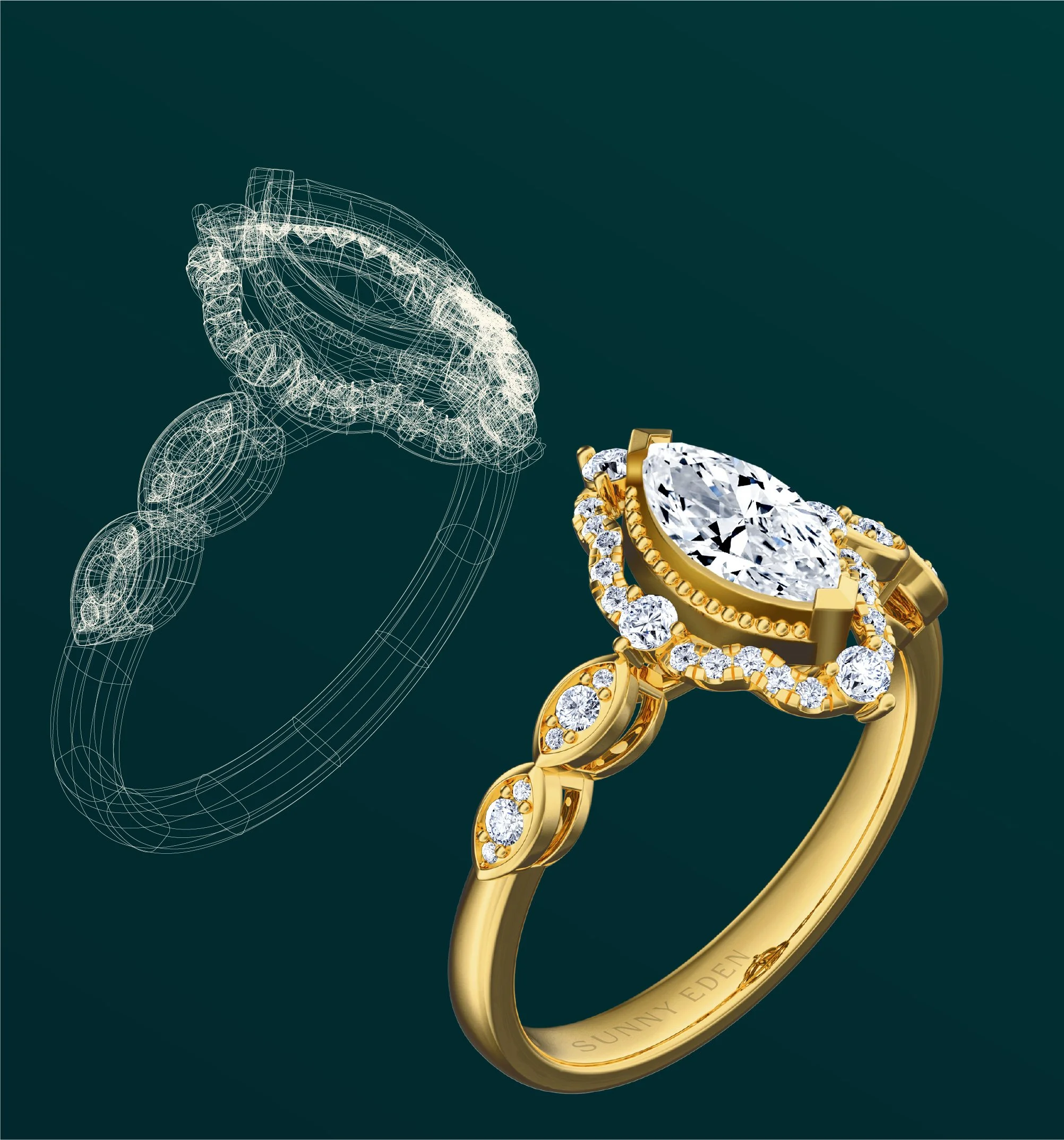 Our design team creates detailed 3D renderings that show exactly how your jewelry will look from every angle.